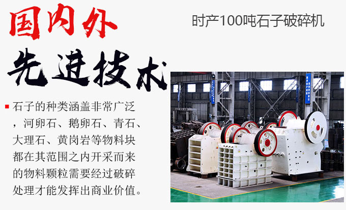 石子的種類涵蓋非常廣泛,河卵石、鵝卵石、青石、大理石、黃崗巖等物料塊都在其范圍之內(nèi)。開采而來的物料顆粒需要經(jīng)過破碎處理才能發(fā)揮出商業(yè)價(jià)值,這里就用到了我們的暢銷設(shè)備——時(shí)產(chǎn)100噸石子破碎機(jī)。投資者為了選到性價(jià)比高的石子破碎機(jī)可謂煞費(fèi)苦心,尋尋覓覓,原來比較好的破碎機(jī)廠家在這里。